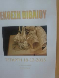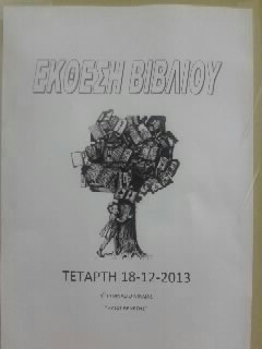 Η Έκθεση βιβλίου θα πραγματοποιηθεί στην αίθουσα εκδηλώσεων του σχολείου την Τετάρτη 18 Δεκεμβρίου κατά τις ώρες λειτουργίας του σχολείου.